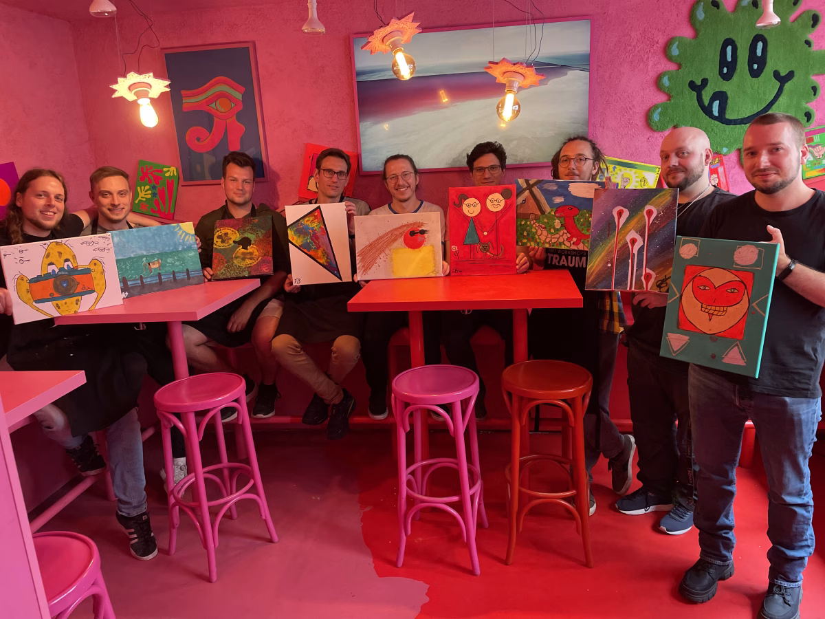 In 2 Stunden tauchst du in die Welt der abstrakten Acrylmalerei ein – mit unterschiedlichen Techniken wie Spachteln, Tupfen oder freien Farbexperimenten. Alle Materialien stehen für dich bereit, inklusive Leinwand, Staffelei und Profi-Guidance. Dein Kunstwerk kannst du am Ende direkt mitnehmen.