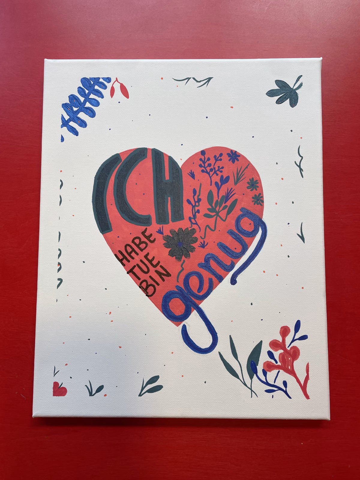 Inklusive: Affirmationskarten (DE & EN), Lettering-Guides, Leinwand & alle Materialien, Schürze sowie Snacks & Erfrischungen.