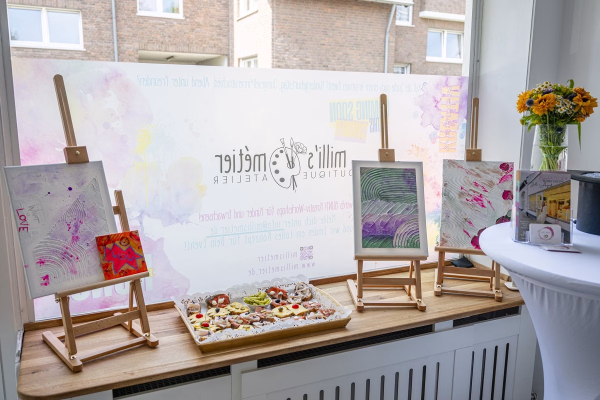 ARTFUL FLOW ist ein 2,5-stündiges Wine & Paint Event in Düsseldorf. Es geht nicht darum, „richtig“ zu malen, sondern darum, sich Zeit zu nehmen, kreativ zu sein und sich auf den eigenen Prozess einzulassen – begleitet, ruhig und ohne Druck.