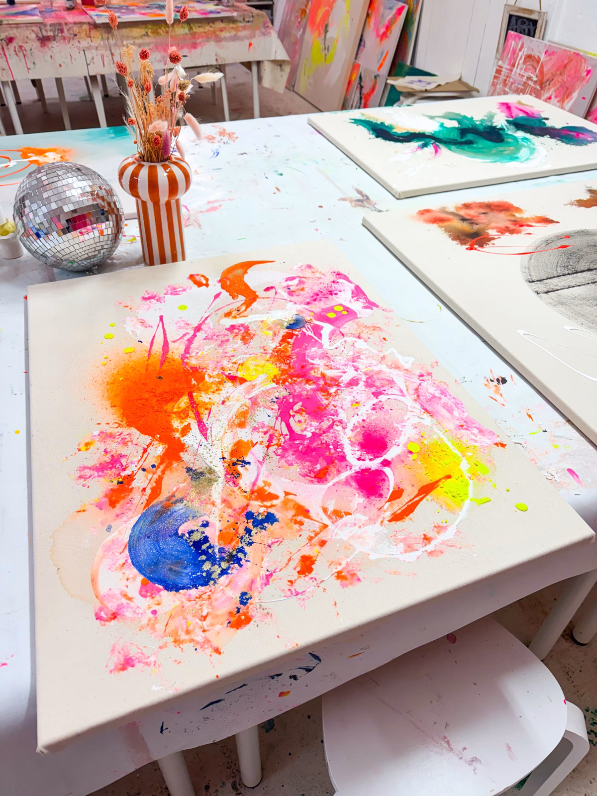 ARTY RAW CANVAS PAINTING ist ein intensiver Gruppen-Workshop in Düsseldorf für Menschen mit Anspruch – ideal für Teams, die Kreativität, Design und außergewöhnliche Erlebnisse schätzen, ebenso wie für Junggesellinnenabschiede, Geburtstage, Freundeskreise, kreative Offsites oder besondere Anlässe. Der Workshop eignet sich besonders für Gruppen mit kreativem Anspruch, die neue Perspektiven suchen, Prozesse anders denken wollen und Wert auf Ästhetik, Tiefe und Qualität legen.
