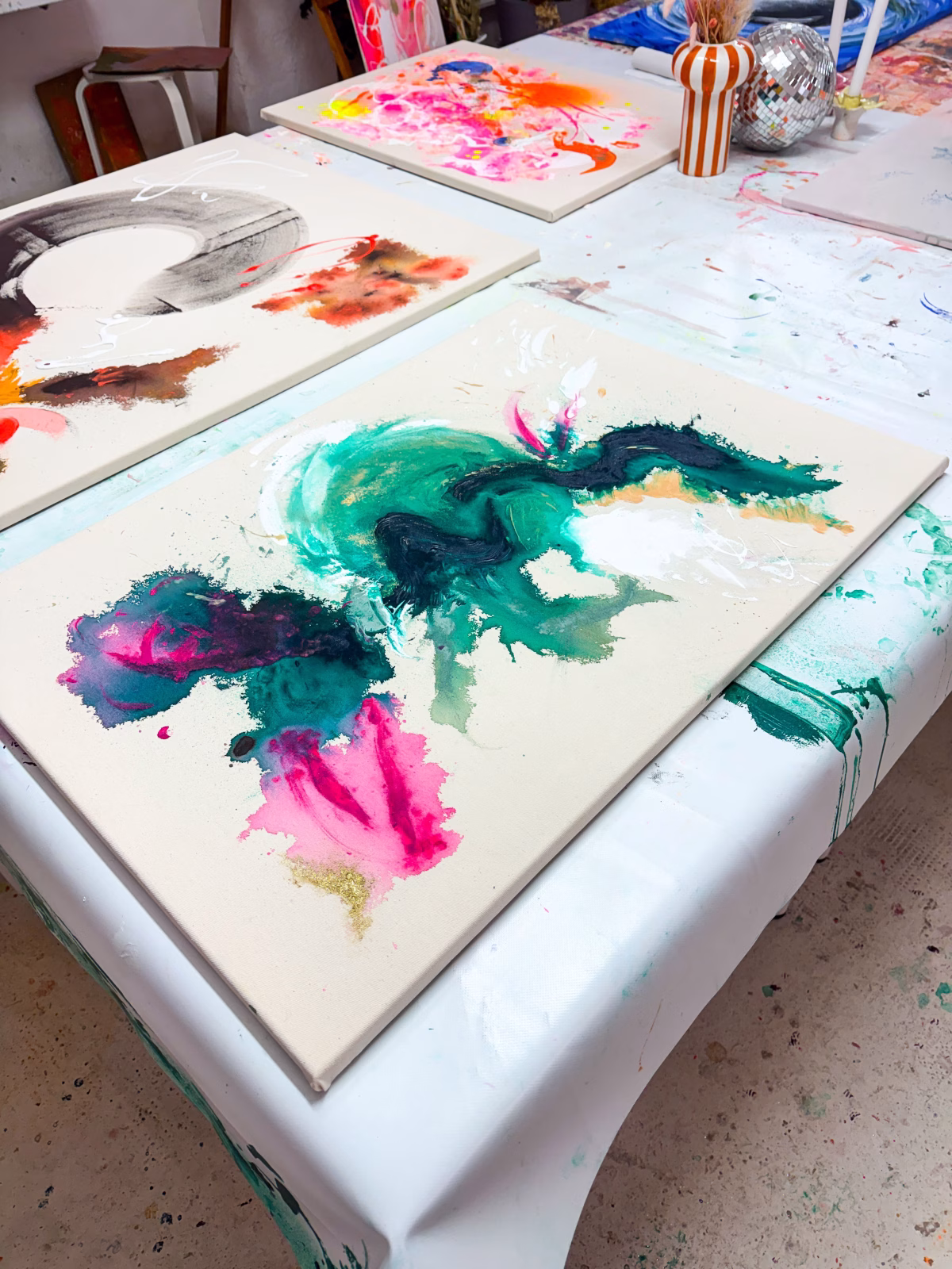Standardformate sind 60 × 80 cm oder 80 × 100 cm. Individuelle Wunschmaße können angefertigt werden – bitte mindestens 14 Tage vor dem Workshop per Nachricht im Buchungstool anfragen.