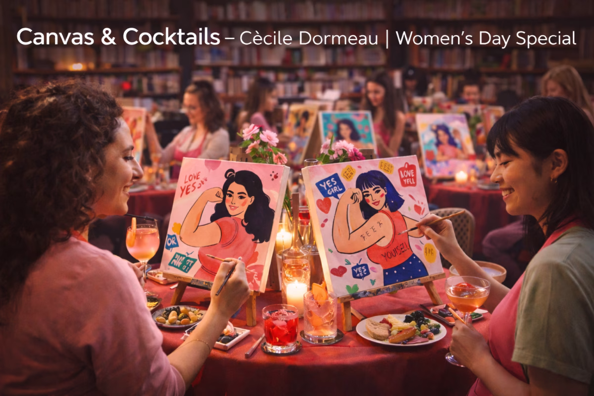Inspiriert von der französischen Illustratorin Cécile Dormeau gestaltet ihr euer eigenes Kunstwerk auf Leinwand – modern, frei und voller Persönlichkeit. Begleitet wird der Abend von Cocktails, entspannter Musik und einer warmen, stilvollen Atmosphäre.