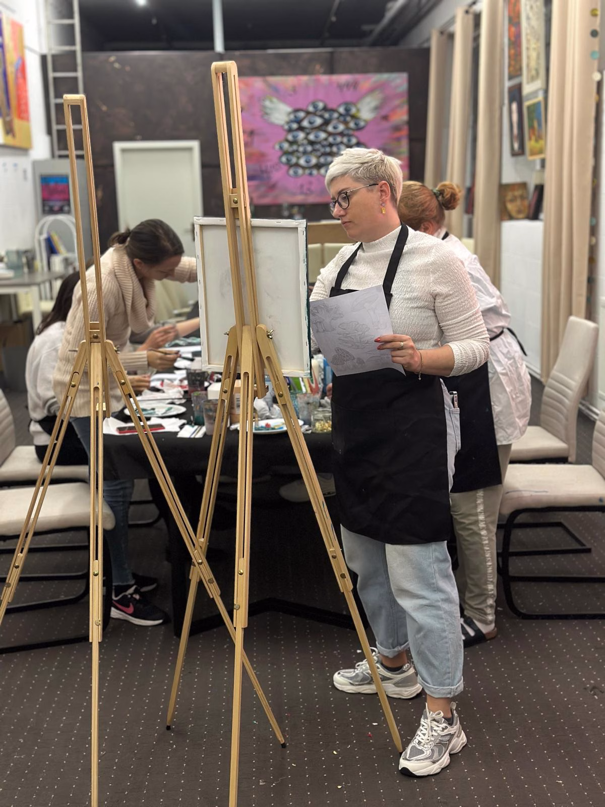 vor 3 MonatenTolles Malatellier mit professioneller Anleitung durch Künstlerin Nathalie Hesse beim Workshop . Auch Nichttalentierte entwickeln hier ihr Talent zum künstlerischen Gestalten und gehen mit positiven Ergebnissen und Stolz nach Hause. Super geeignet auch für Geburtstage, Weihnachtsfeiern, Teambuilding, Firmenevents... Für Erwachsene wie für Kinder,einfach super! Parkplatz ohne Gebühr direkt hinterm Haus!