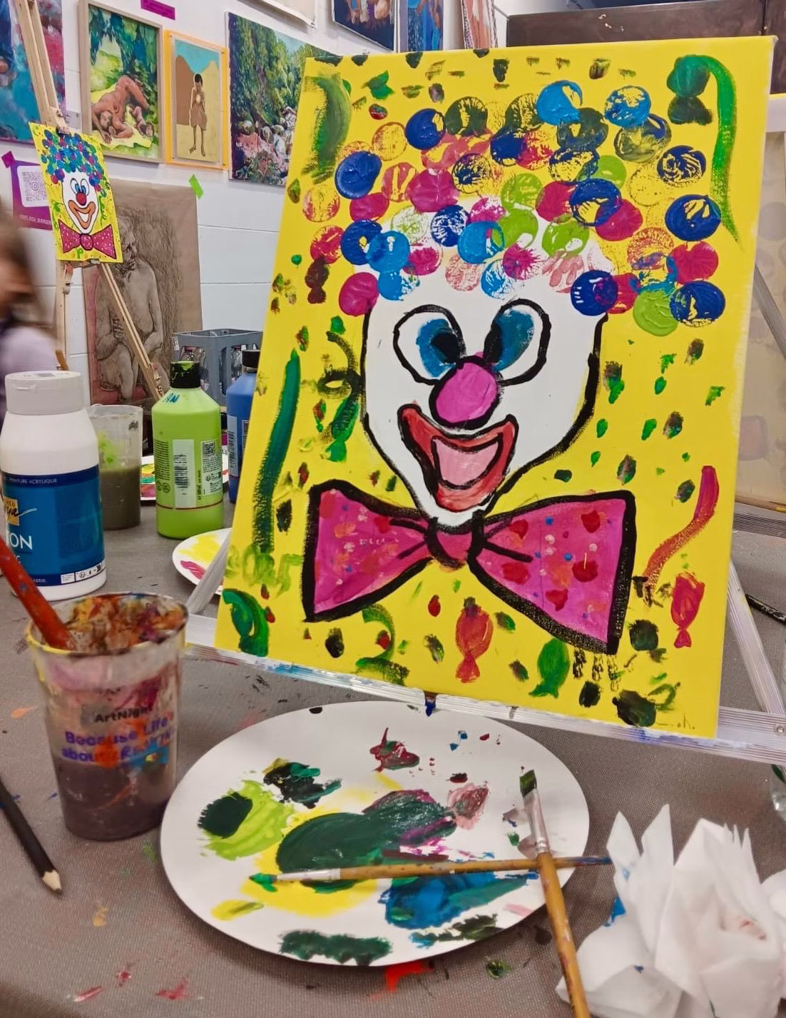 Beim Faschings-Malspaß im FEMME ART Atelier gestalten wir gemeinsam ein farbenfrohes Clown-Motiv – perfekt für Kinder, die Spaß an Kreativität, Farben und Fasching haben.