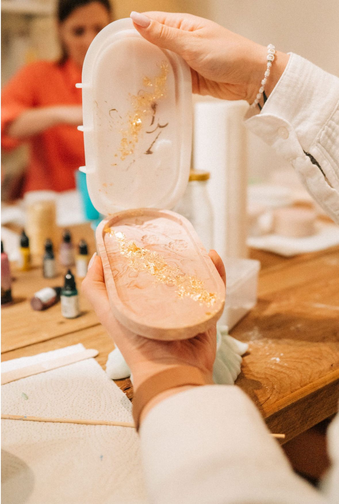 In diesem Workshop lernst du Schritt für Schritt, wie du Jesmonite® richtig anrührst, Farben kombinierst und eigene Formen gestaltest. Lass deiner Kreativität freien Lauf und nimm am Ende einzigartige Einzelstücke mit nach Hause.
