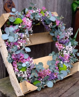 ein handgebundener Frühlings(tür)kranz zum Mitnehmen