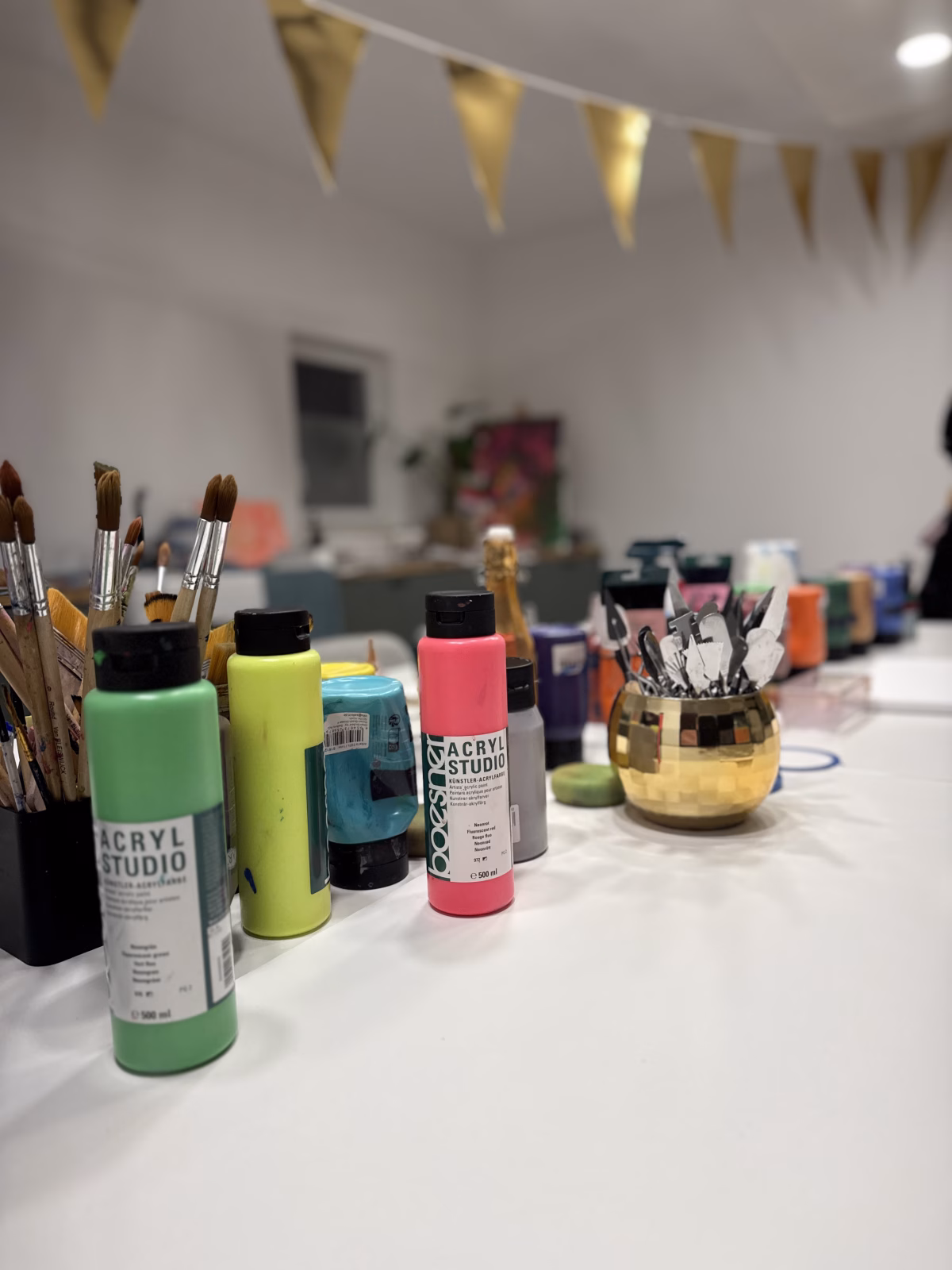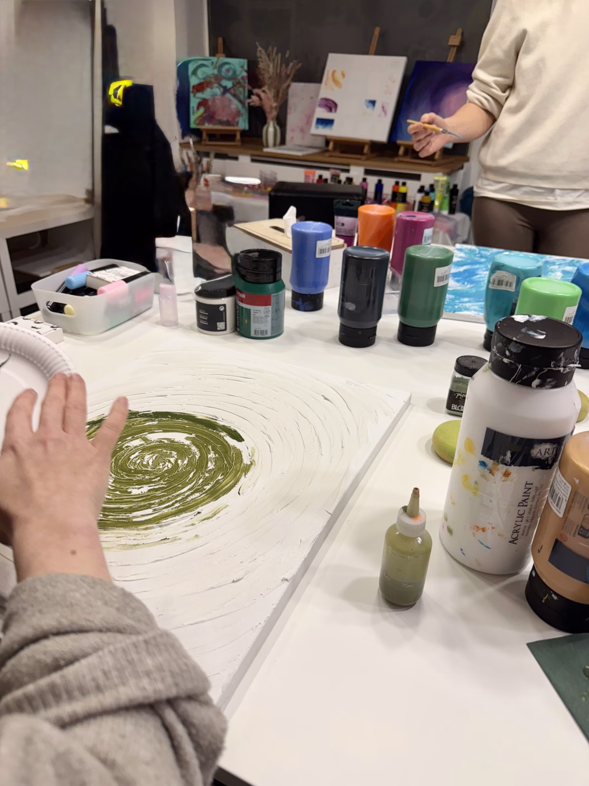 Alles, was sich zeigt, darf danach ohne Druck und ohne Erwartungen auf die Leinwand fließen.