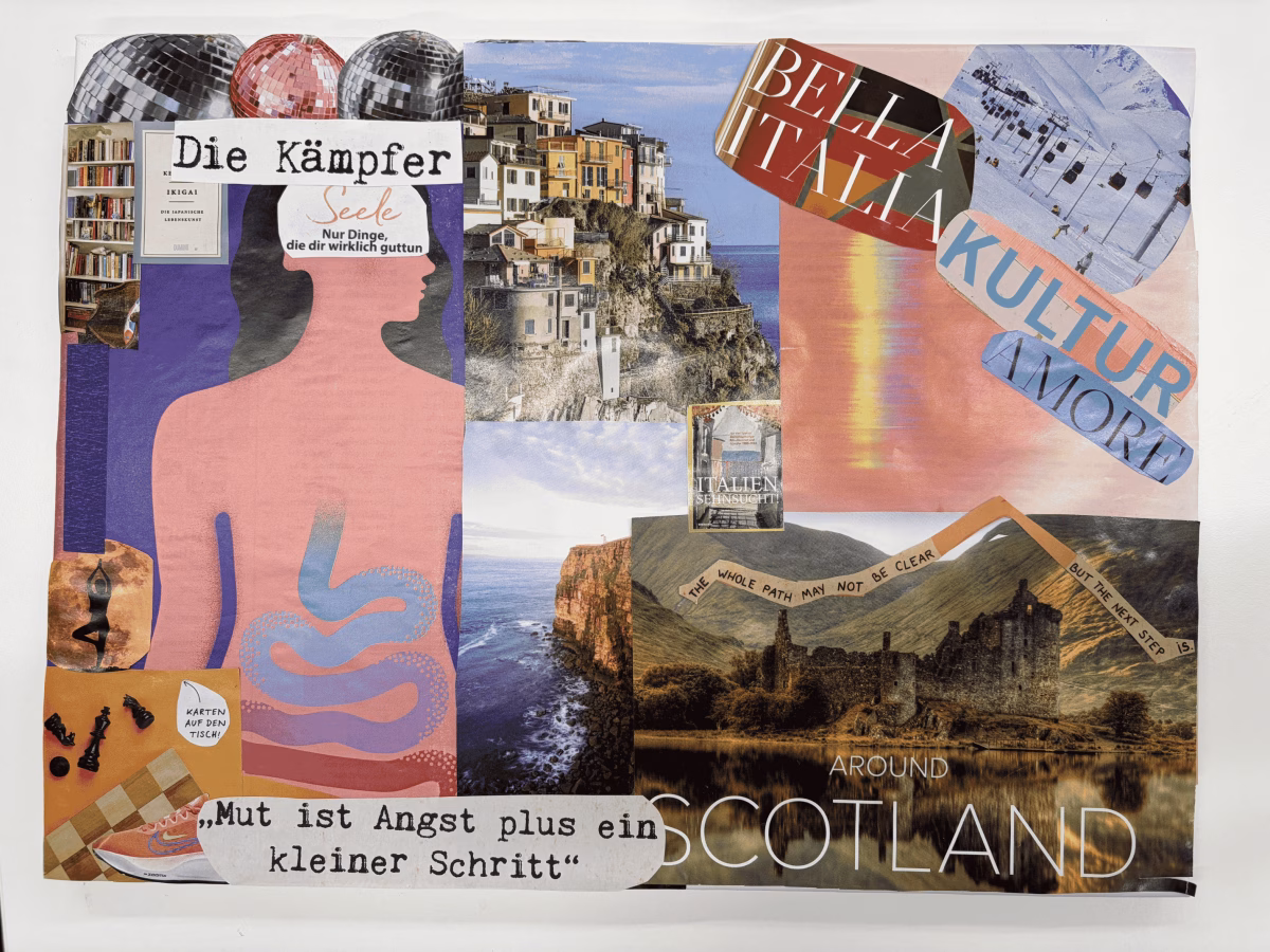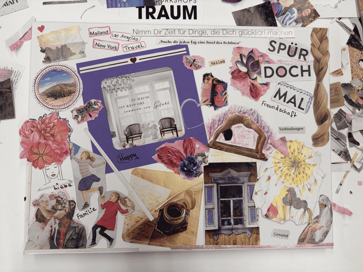 In diesem 3-stündigen Workshop gestaltest du dein persönliches Vision Board – als kraftvolle, visuelle Erinnerung an das, was du wirklich willst. Mit Bildern, Worten, Farben und Collage-Elementen machst du deine Wünsche greifbar und schaffst Klarheit für deine nächsten Schritte – privat oder beruflich.