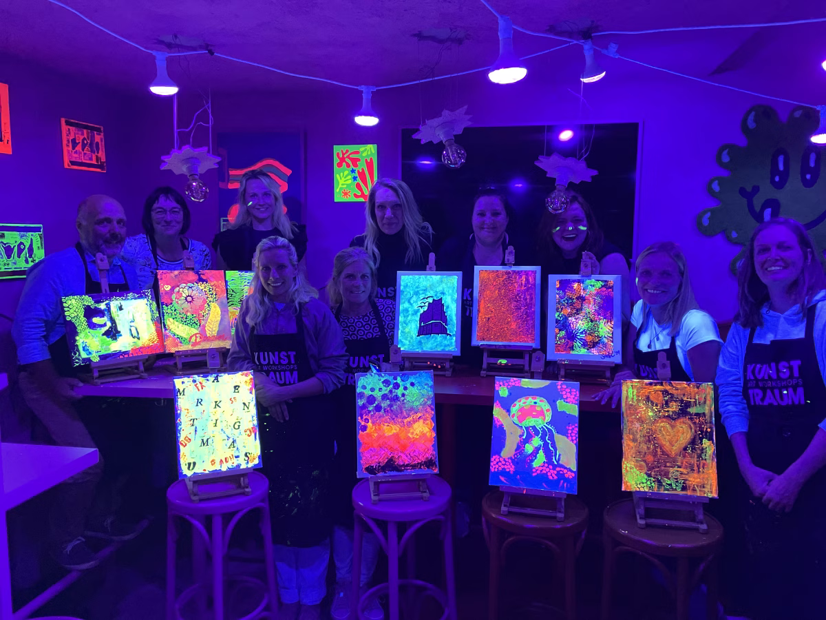 Tauche ein in eine leuchtende Welt aus Neonfarben und Schwarzlicht-Vibes. Bei dieser besonderen Art Night wird nicht nur gemalt – hier beginnt alles zu strahlen.