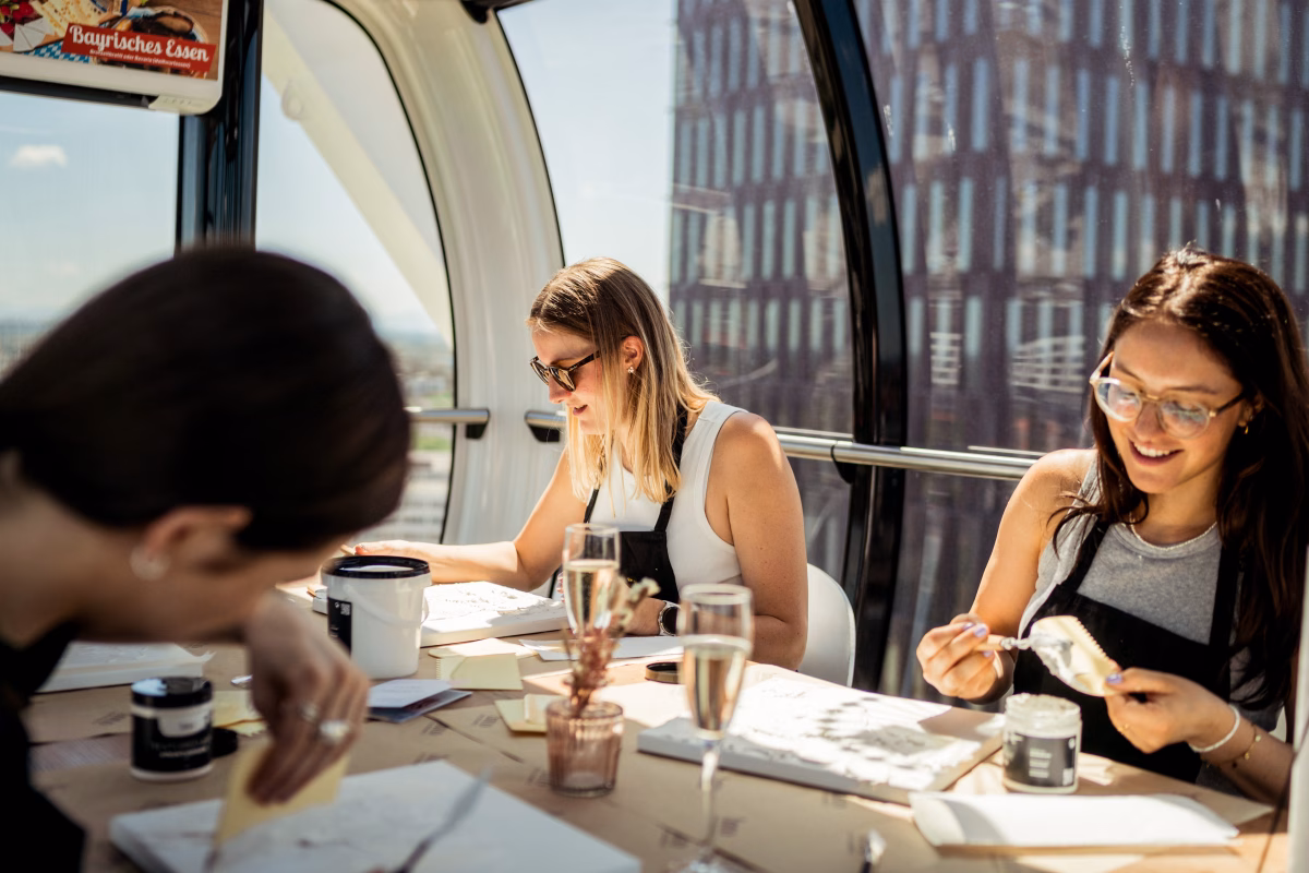 Erlebt euren Junggesellinnenabschied auf ganz besondere Weise: Beim exklusiven Paint & Ride wird eine Gondel des Umadum Riesenrad zu eurem privaten Mini-Atelier – hoch über der Stadt, mit Panorama-Blick und ganz viel Raum für Kreativität.