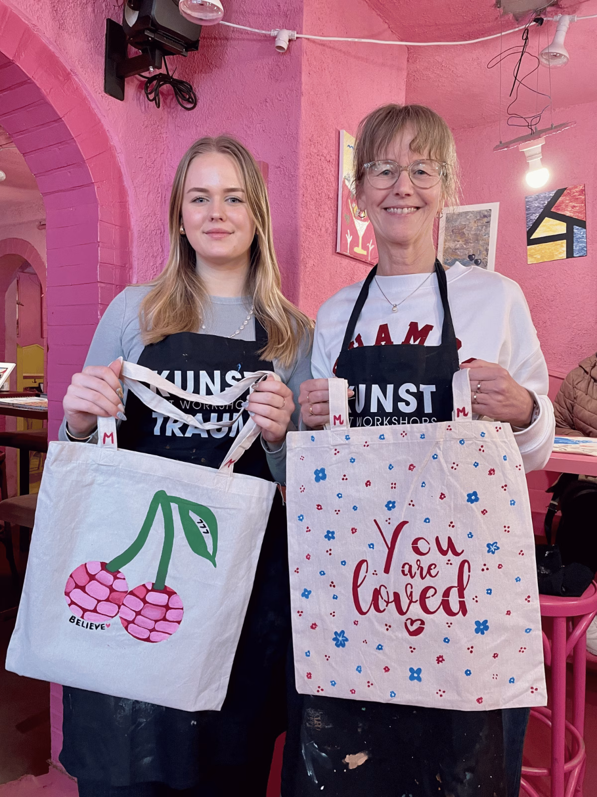 Inklusive: Tote Bag, Farben, Pinsel, Schablonen, Schürze, professionelle Begleitung sowie 1 Welcome-Drink, Wasser & Snacks.
