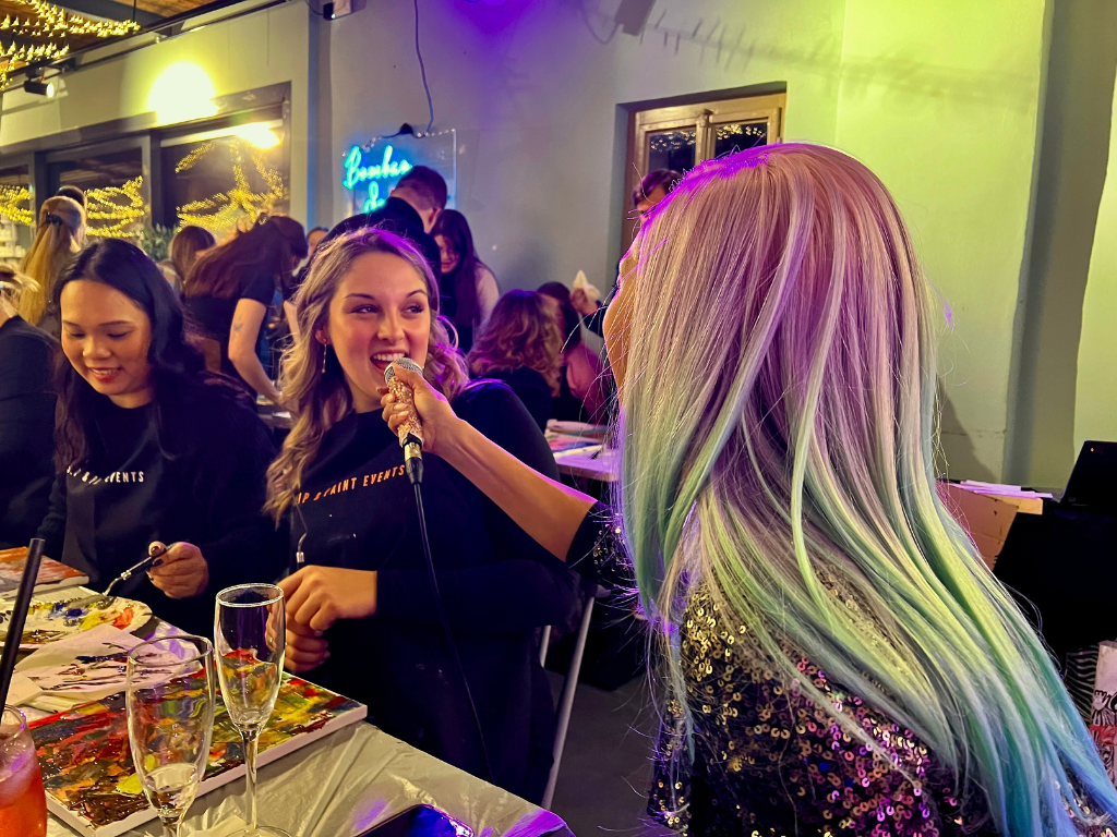 Kunst trifft Entertainment – bei unserer Sip and Paint Karaoke Edition wird nicht nur gemalt, sondern auch gemeinsam gesungen!